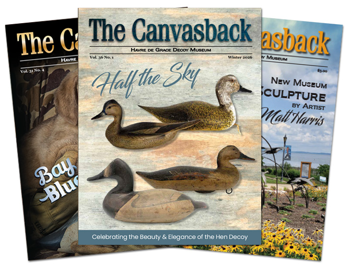 The Canvasback is a quarterly journal that has been published since 1992 for members of the Havre de Grace Decoy Museum. This archive of past issues is updated with each new issue. Hard copies of some issues are available in the Museum Store, but all issues can be downloaded here as PDF files.